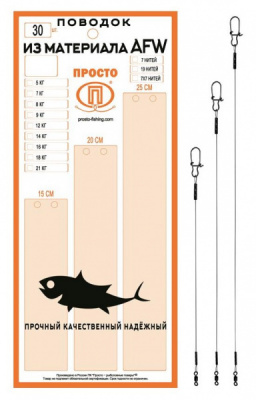 Набор поводков AFW 1x19 нитей 30 штук в упак. 0,3мм - 12 кг 15-20-25 см по 10 штук