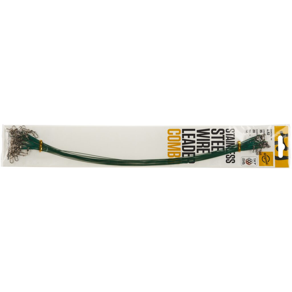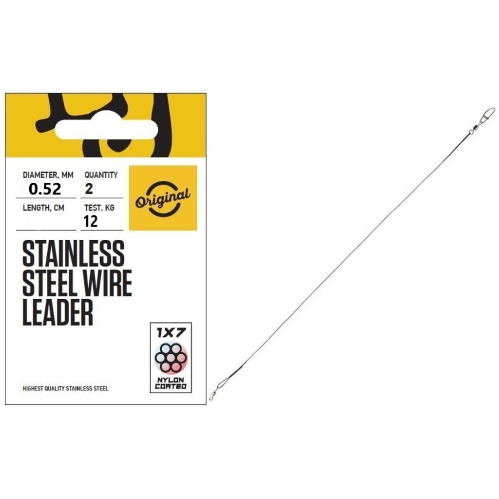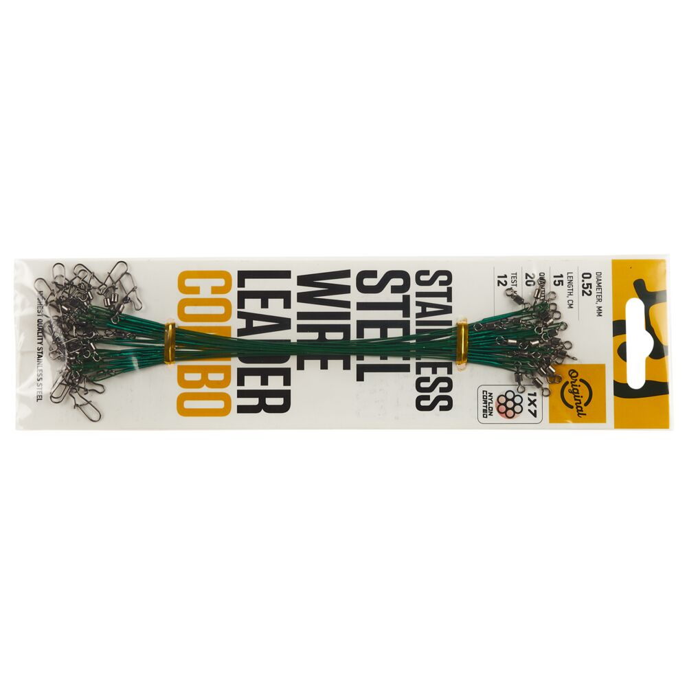 Поводки оснащены высококачественным вертлюгом (для соединения с основной леской) и вертлюгом с застёжкой (для крепления приманки).